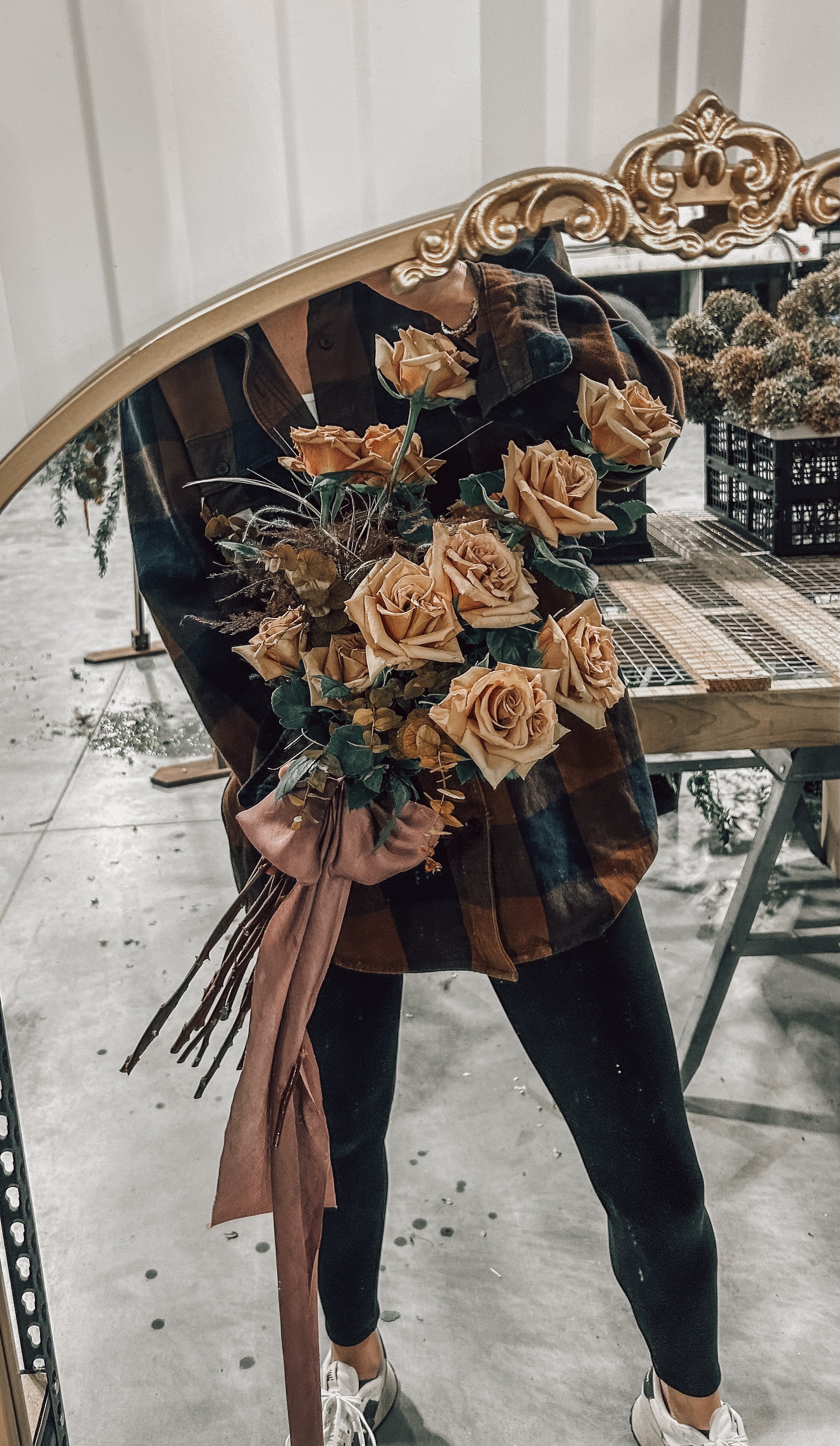My love is anything imperfect, maybe even a bit wild. My style is a little moody, a lot of bold, with a soft, romantic edge. I lean into lush texture with a mix of fresh and preserved foliage and greens.